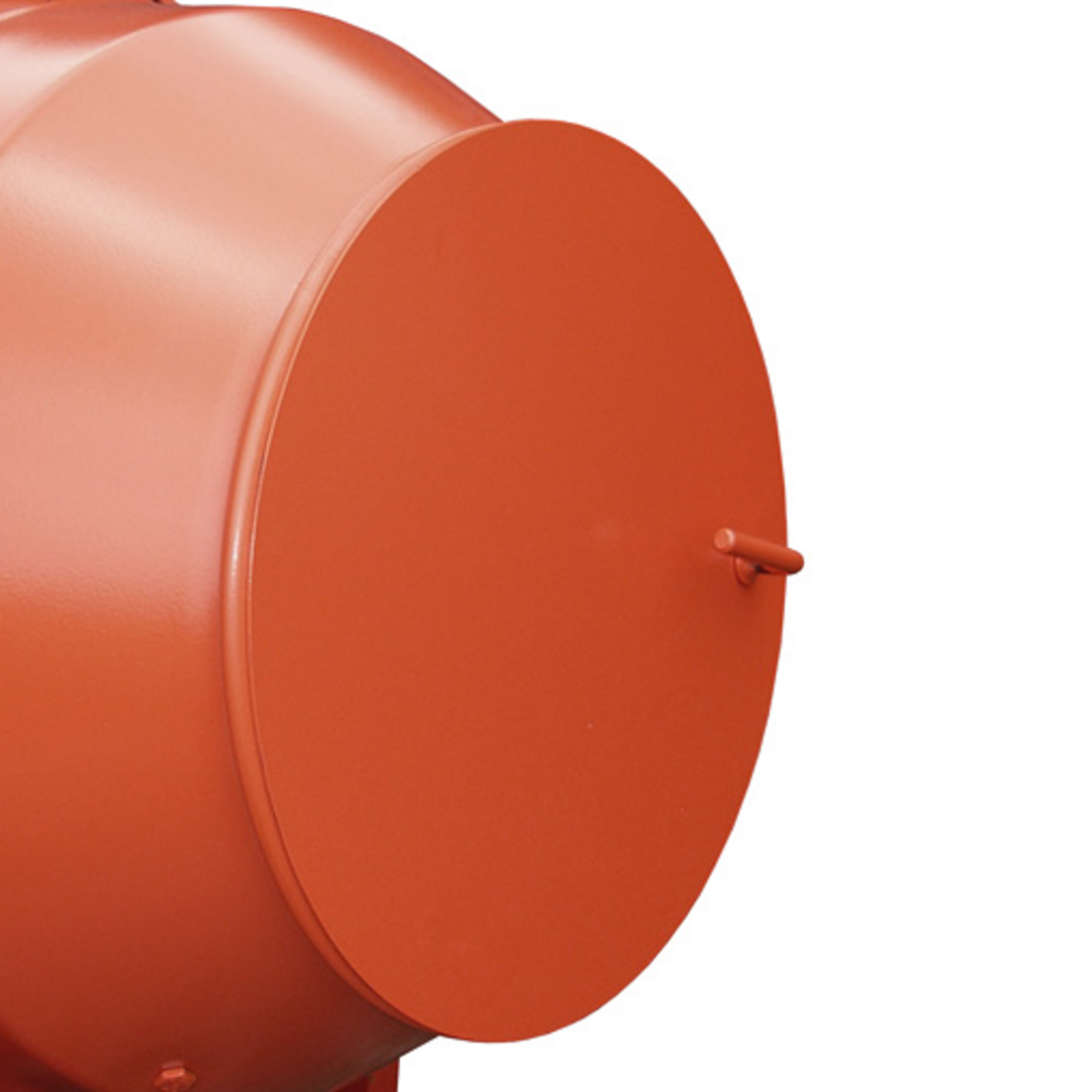 + Die große, gebördelte Einfüllöffnung der zweiteiligen Trommel sowie die