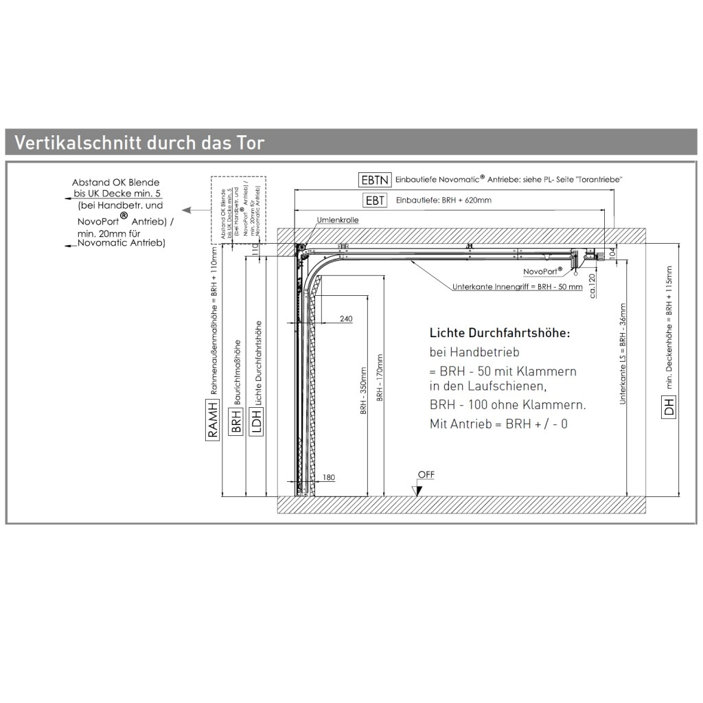 von mindestens 11 cm(zwischen Oberkante_Toröffnung und Deckenhöhe)