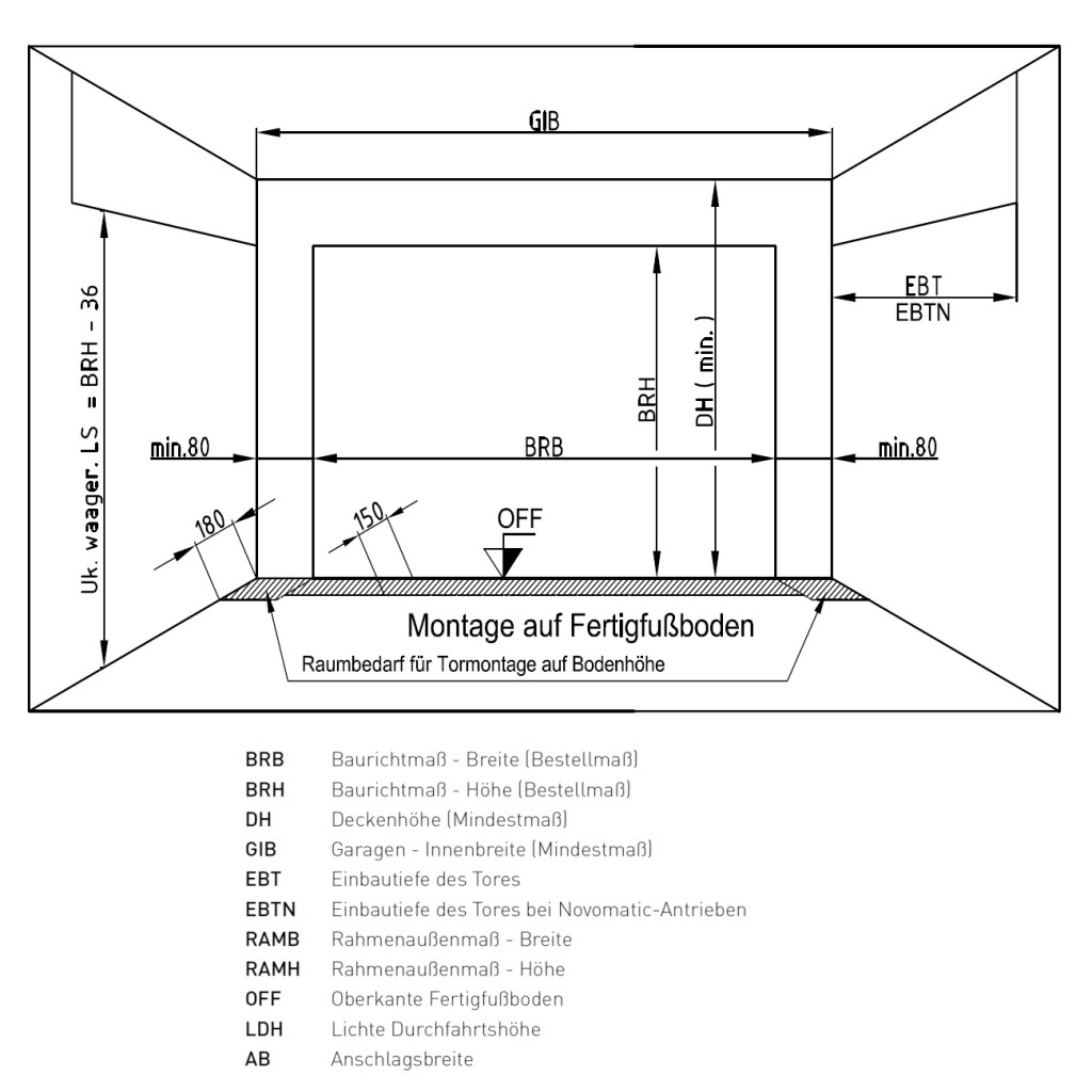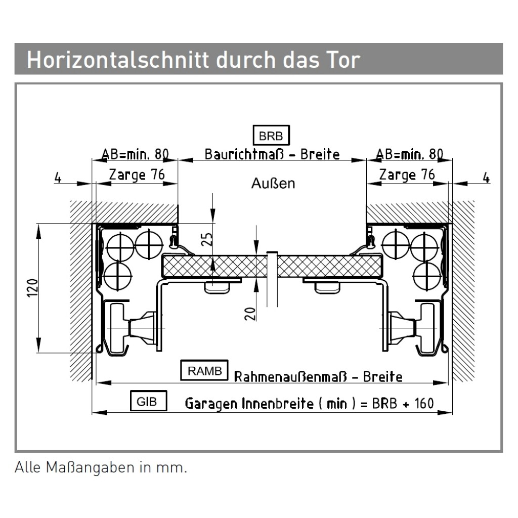 rechts und links der Töröffnung jeweils mindestens 8 cm Platz für die Montage haben