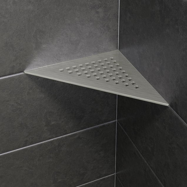 + Schlüter®-SHELF-E sind Ablagen in drei unterschiedlichen Geometrien für den Eckeinbau