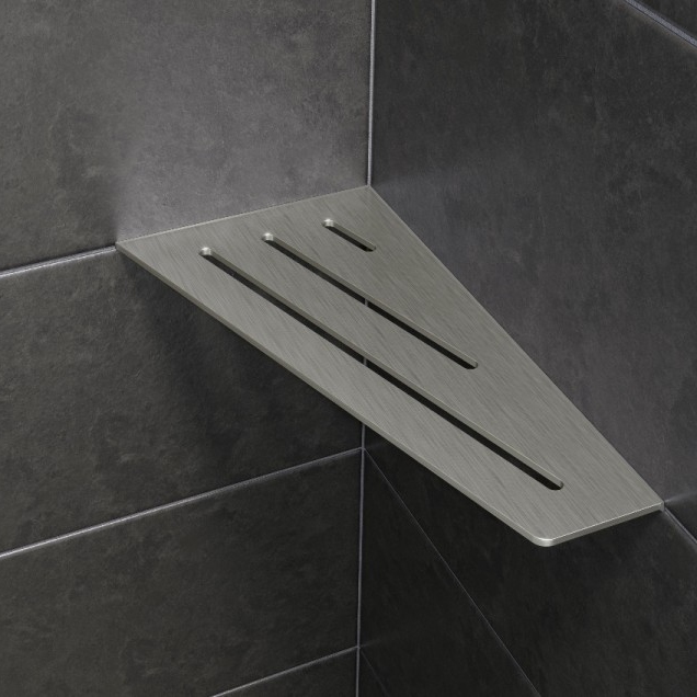 + Schlüter®-SHELF-E sind Ablagen in drei unterschiedlichen Geometrien für den Eckeinbau
