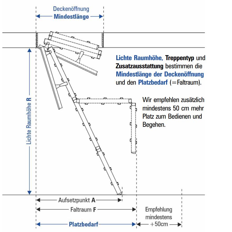 (abhängig von Kombination aus Deckenöffnungslänge und Raumhöhe).